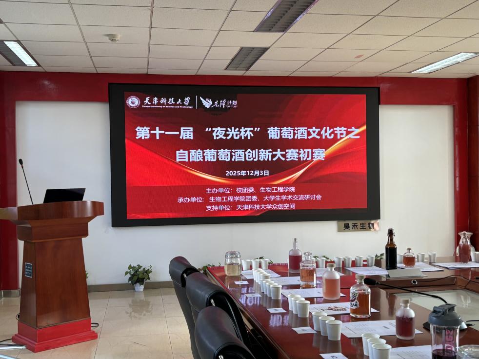 第十一届“夜光杯”自酿葡萄酒创新大赛初赛在滨海中院2-208会议室正式开启。自11月13日宣讲会播撒下酿酒的种子以来,各院系学子带着近一个月的实践成果,在冬日里呈上了一场关于专业与匠心的味觉盛宴。